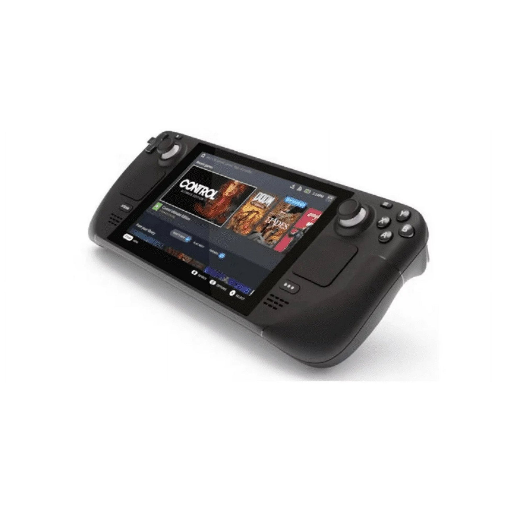 - Portability meets power. We partnered with AMD to create Steam Deck's custom APU, optimized for handheld gaming. It is a Zen 2 RDNA 2 powerhouse, delivering more than enough performance to run the latest AAA games in a very efficient power envelope.,Your Steam Library, anywhere. Once you've logged into Steam Deck, your entire Steam Library shows up, just like any other PC. You'll also see the compatibility rating of each game, indicating the kind of experience you can expect when playing. You can dynamically filter any view in your library by compatibility rating if you're looking for specific sorts of experiences.,Control with comfort. The Steam Deck was built for extended play sessions whether you're using thumbsticks or trackpads with full-size controls positioned perfectly within your reach. The rear of the device is sculpted to comfortably fit a wide range of hand sizes.
