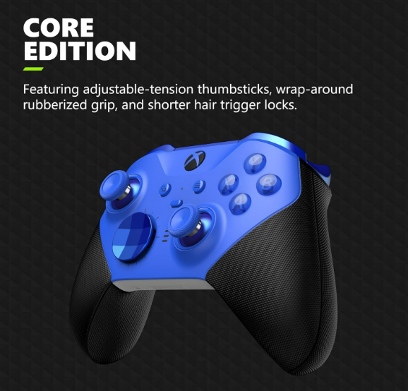 Tay cầm không dây XBOX ELITE 2 SERIES: Chơi như một người chuyên nghiệp với cần điều khiển có độ căng có thể điều chỉnh, tay cầm bọc cao su bao quanh và khóa kích hoạt tóc ngắn hơn.